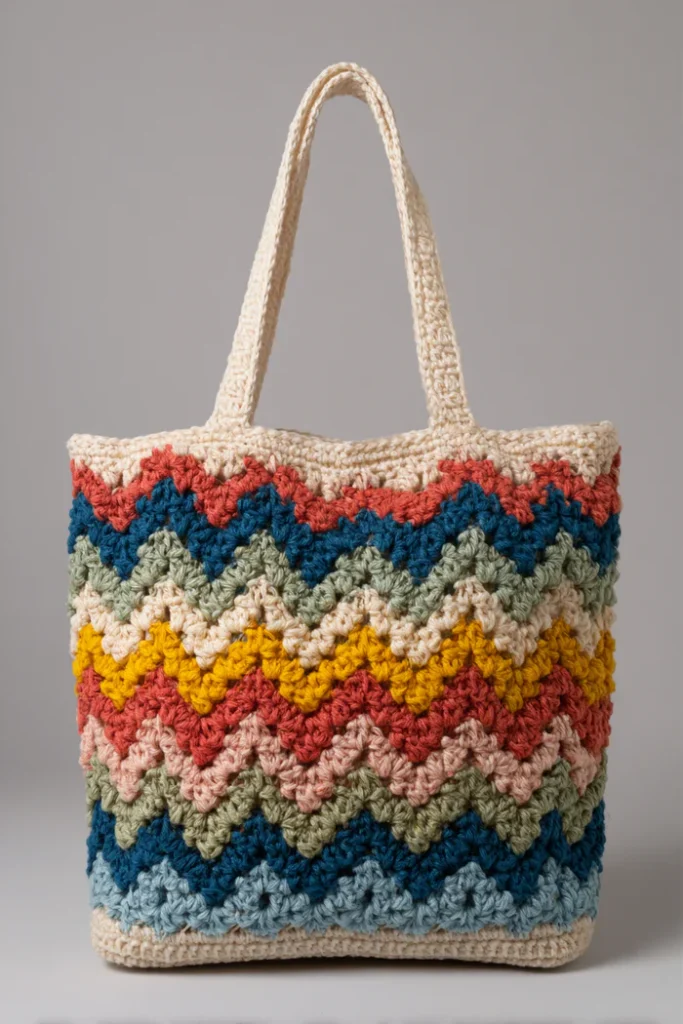 경쾌한 여름 무드를 원한다면 썸머 셰브론 백이 제격이다. 코튼 얀 300g을 사용해 지그재그 패턴을 뜨고, 비비드 컬러를 더하면 보는 순간 기분이 좋아진다. 나무 손잡이가 더해져 내추럴하면서도 트렌디한 분위기를 풍기며, 피크닉이나 캠퍼스 데일리룩에 가볍게 매치하기 좋다.