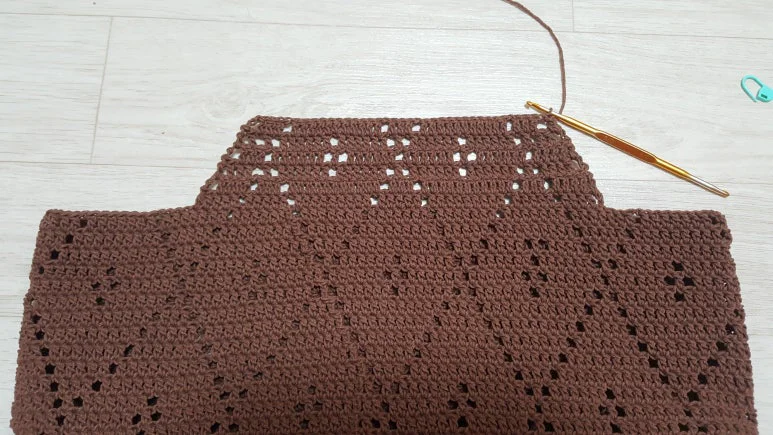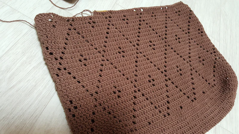 이렇게 다이아몬드 무늬에 주의하면서 단을 올려주세요. 저는 가방이 너무 작은 것 같아서 도안 보다 몇 단을 더 떠주었습니다.