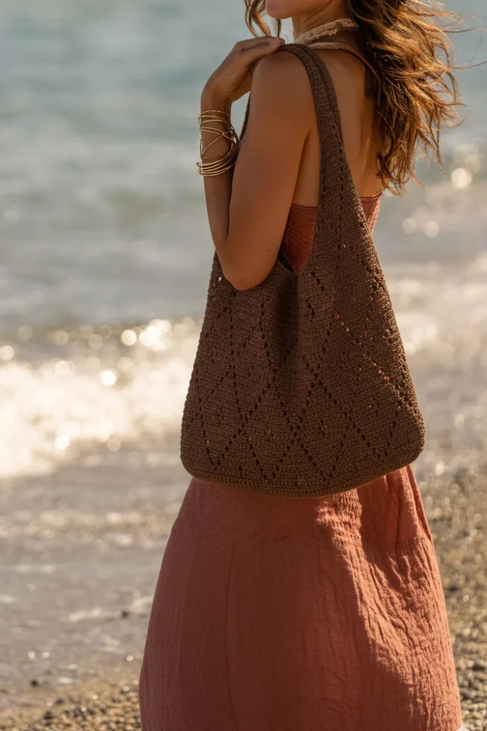 국민 망태기 가방이라고도 불리는 다이아몬드 패턴의 코바늘 가방입니다. 예전에 동백꽃 필무렵이라는 드라마에서 주인공 동백이(공효진)가 다이아몬드 패턴의 뜨개질 가방을 들고 나왔었는데요. 바로 그 무늬입니다.