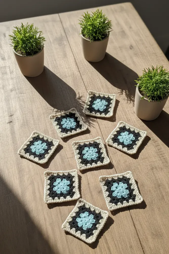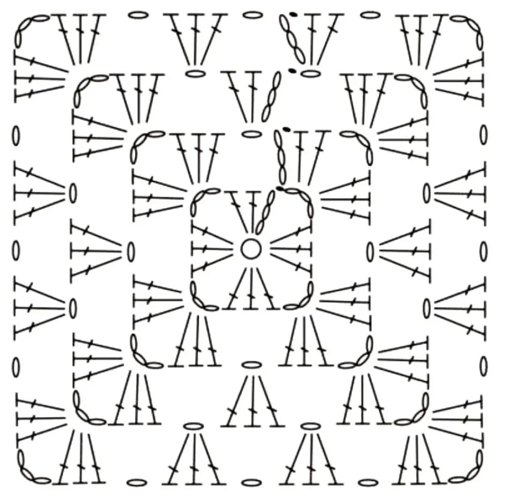 먼저, 여러 개의 그래니 스퀘어 모티브를 만들어야 해요. 첨부된 도안을 참고하면 훨씬 쉽게 만들 수 있습니다.