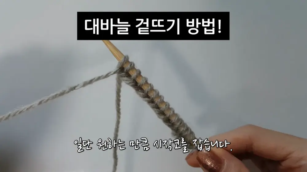 일단 대바늘에 원하는 만큼 시작코를 잡습니다. 대바늘 코잡기 방법은 아래 글 참고해 주세요.
