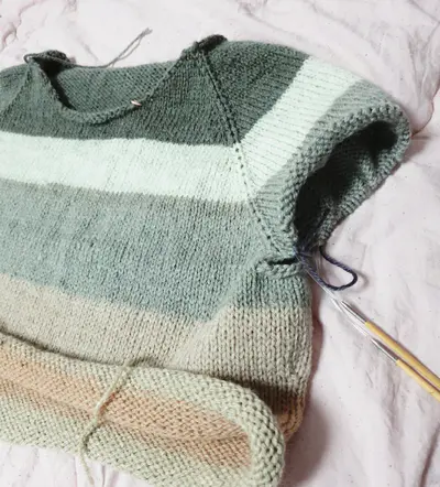 스트라이프 패턴으로 스웨터를 만들려면 다른 색상의 뜨개실을 여러 볼 준비해야 하며, 중간 중간 실을 끊고 다시 이어줘야 하는 번거로움이 있습니다.